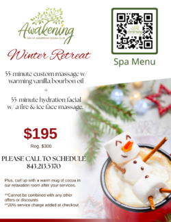 Call us at (843) 213-5370 to customize a beautiful Spa experience for your special someone.